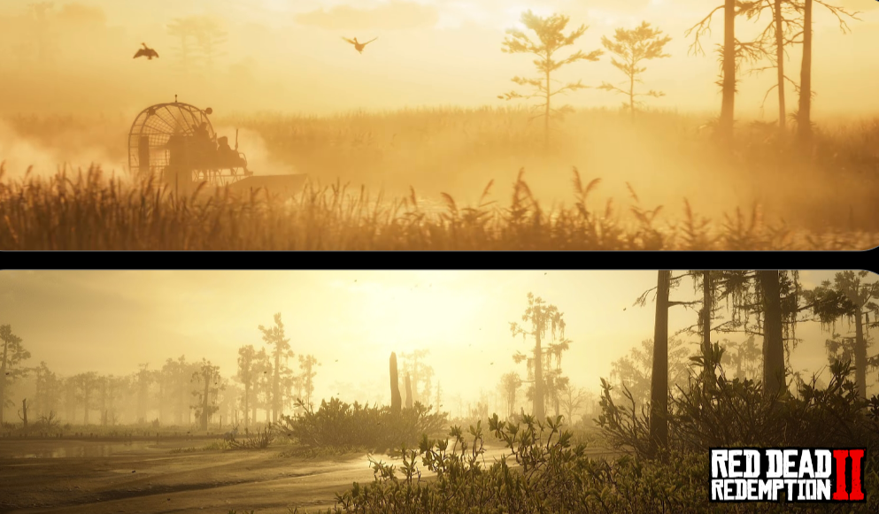 Son olarak GTA 6’daki hacimsel aydınlatmanın, grafiklerini öve öve bitiremediğimiz Red Dead Redemption II ile kıyasına dair bir görsel bırakalım. Güneş ışığının çevredeki bitkilere nasıl doğal şekilde yansıdığını siz de görebilirsiniz. Gerçekten muazzam bir sahne:
