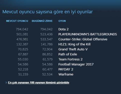 Steam’in En Çok Oynanan Oyunlar Listesinde 2 Numara